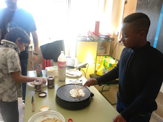 Aujourd'hui en cours de français, les élèves de 5º et 6º on cuisiné et mangé des crêpes sucrées.